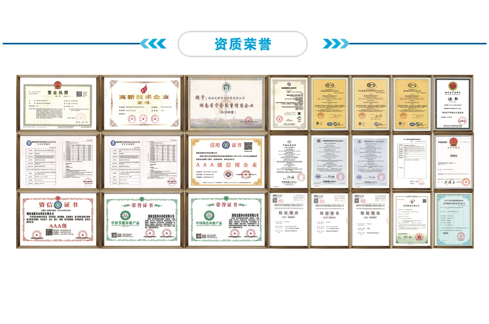 龍新凈水秉承著品質是企業生存之道,服務是企業發展之根的理念,先后通過ISO管理體系認證、五星售后服務認證、高新技術企業認證、衛生許可批件和眾多榮譽證書及近百項國家專利技術。